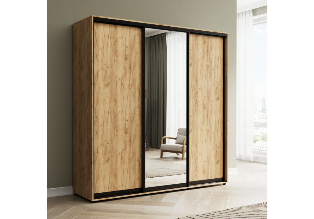 Шкаф купе 3 двери (дуб вотан, профиль чёрный)